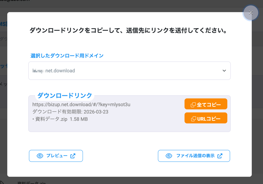 その後、取引先にメールやチャットなどでダウンロードリンクを送信します。